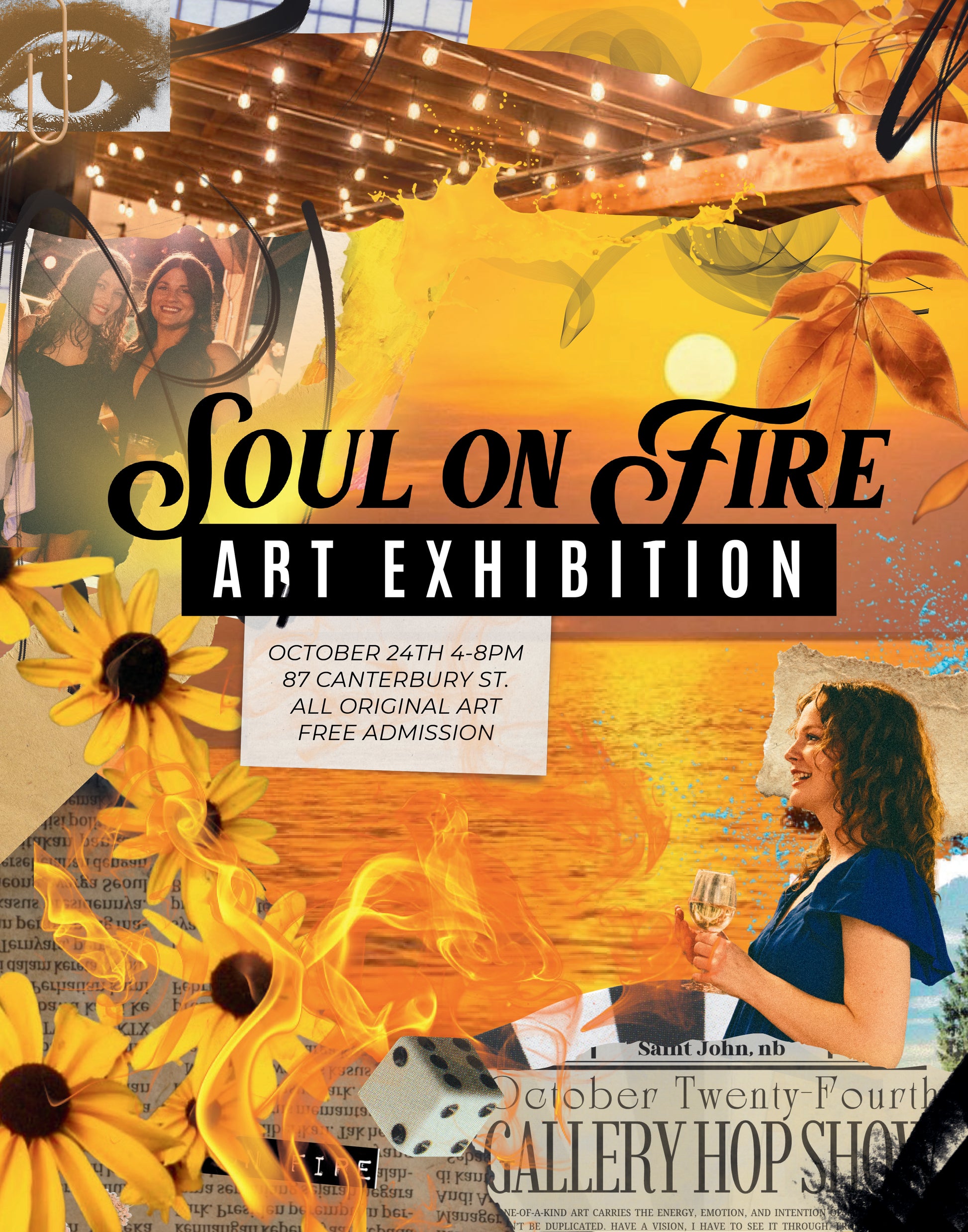 Presenting an all original night of the arts group exhibition on the night of the Saint John Gallery Hop.. explore the uptown galleries, all in walking distance. The event begins at 4 PM, and each space has its own hours throughout the evening. All shows are free and open to the public. Our SOUL ON FIRE Exhibition opens on this night, from 4:00-8:00pm (No Ticket required)