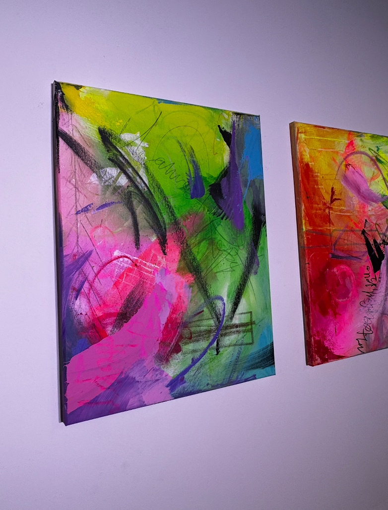 Original abstract acrylic on canvas, mixed media- acrylic, oil pastels