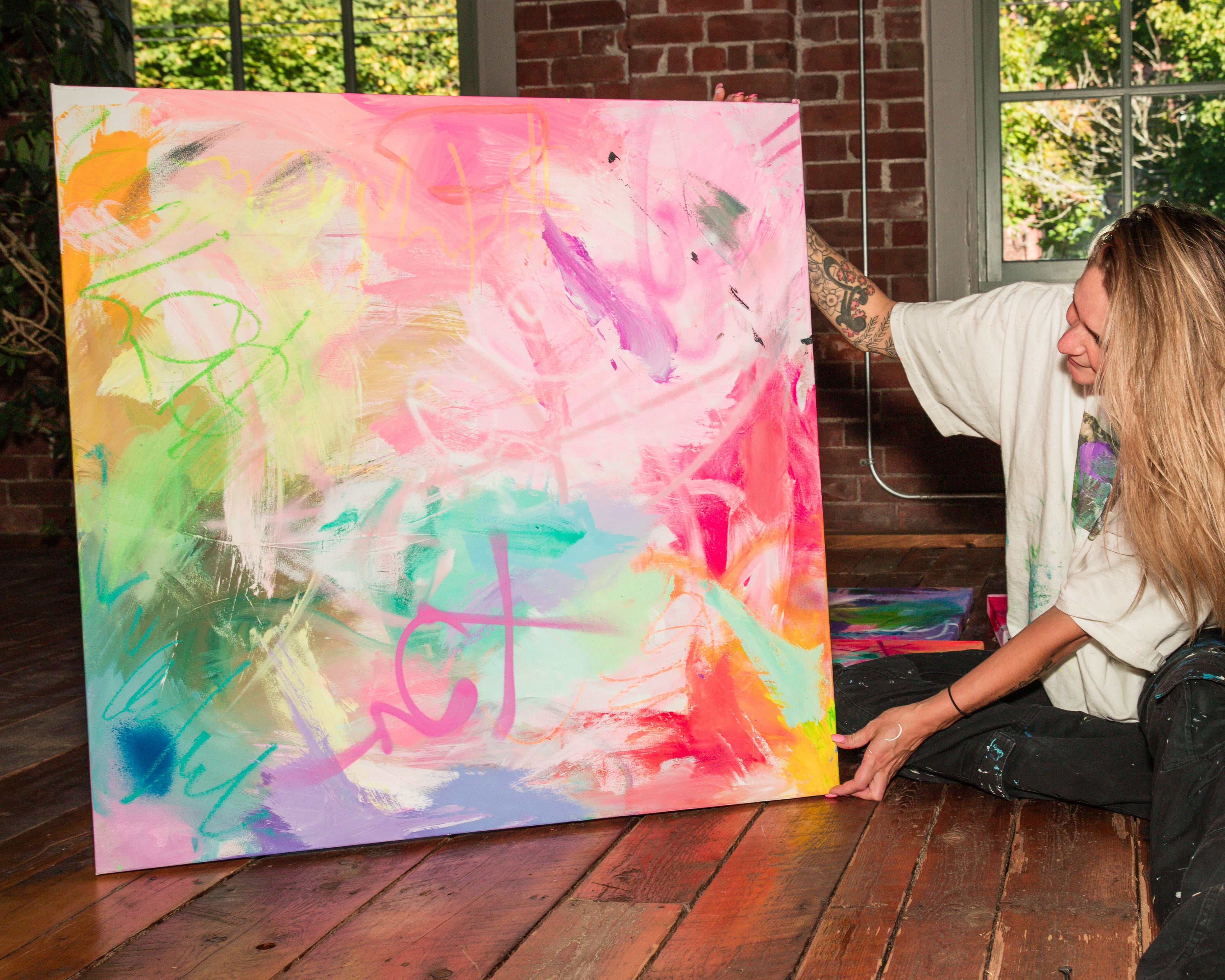 Portfolio of original abstract canvas works by artist Abigail Reinhart. Each piece is one of a kind hand-painted with acrylic, oil, spray paint, india ink, mixed media.