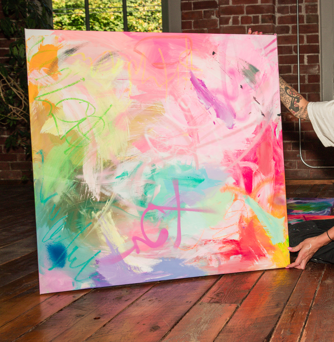 Original abstract painting by Abigail Reinhart Mixed media: acrylic paint, india ink, spray paint, oil pastels on canvas. Unique, one of a kind hand painted ultra-textured artwork.