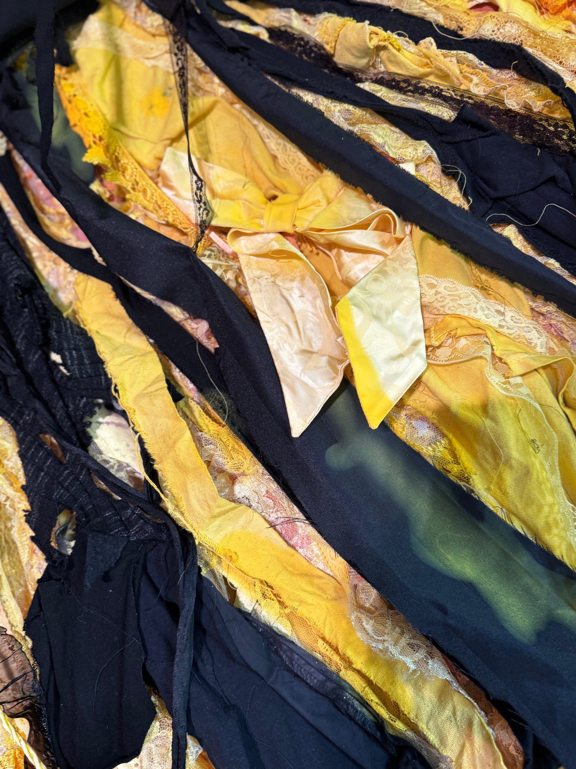 One-of-a-kind Original Mixed-Media Textile Art crafted entirely by hand from repurposed materials. Created using reclaimed lace and mixed textiles — every element from scrap materials (excluding thread) 7 x 7 ft by Abigail Reinhart